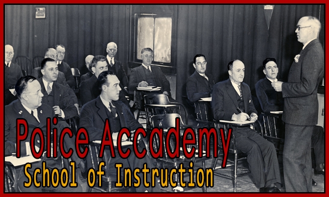 1:00 pm – Afternoon session devoted to moot court proceedings with practice in giving testimony, study of the Book of Rules, practice in making reports, lectures on handling fires, thieves, pickpockets, murderers, and so on.